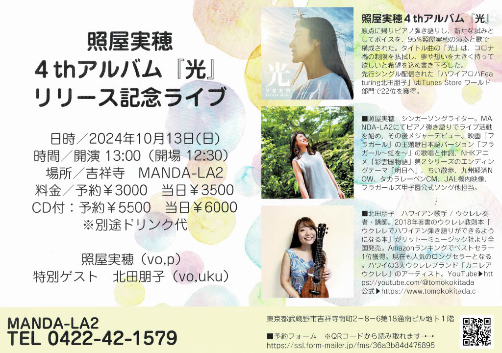 照屋実穂4thアルバム『光』CDリリース記念ライブを行います!