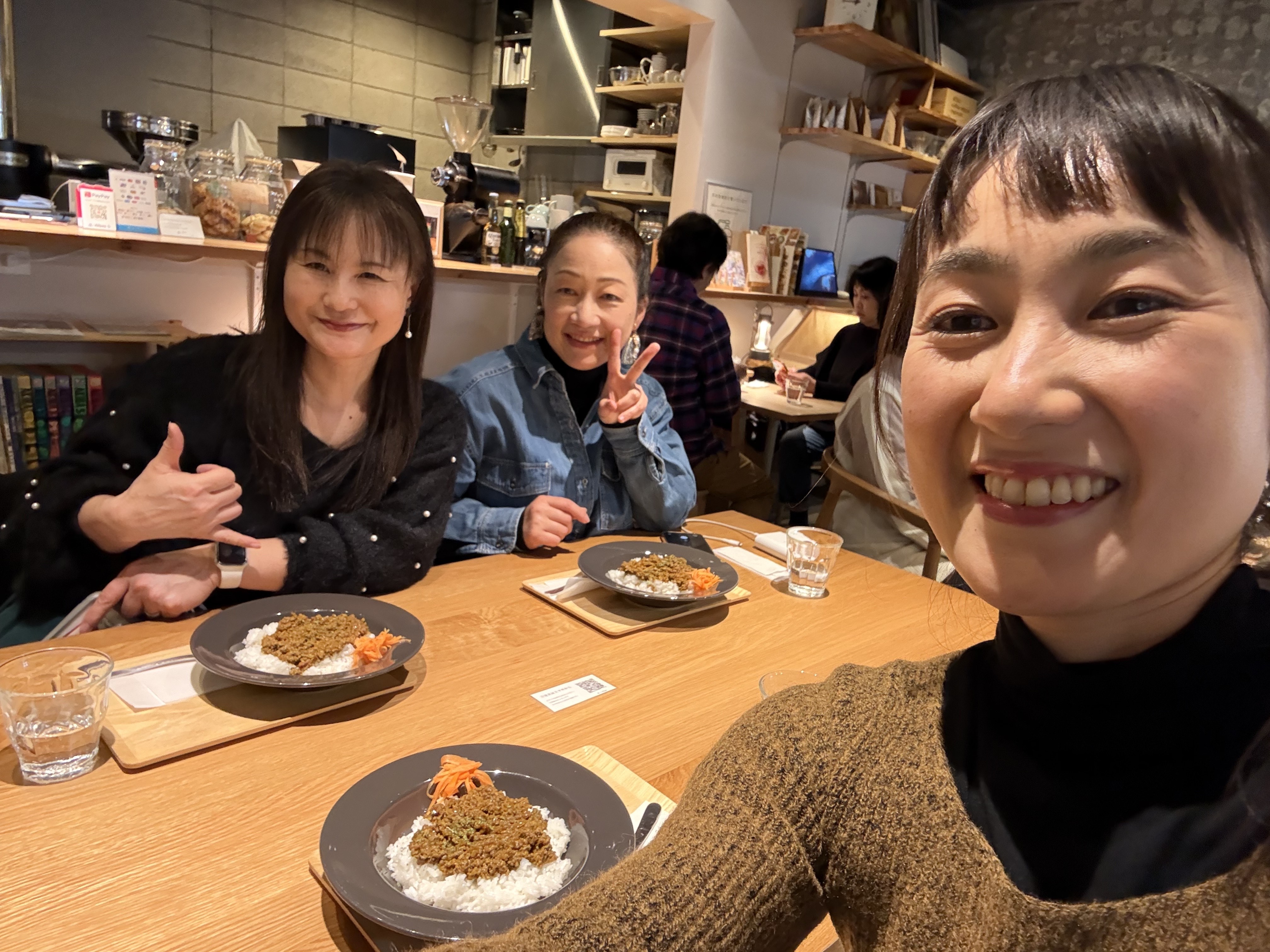 主催者のTOMOさん、繋げてくださったゆきこさんと。私の大学のサークル仲間が営んでいる脇町珈琲にて